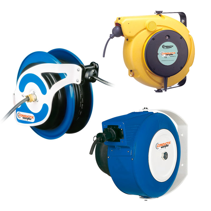 Kabelové navíječe Conductix-Wampfler se používají zejména pro napájení elektrických dílenských nástrojů. Kabely neleží volně na zemi, čímž se snižuje riziko úrazu zejména elektrickým proudem a současně se prodlužuje doba životnosti kabelů. V našem programu najdete kabelové navíječe s kabely od 2 x 1 mm² se 7 metry odtahu přes 8 x 1,5 mm² se 30 metry odtahu až po navíječe pro použití k uzemnění cisternových vozů s kabelem 1 x 16 mm² a 15 metry odtahu.